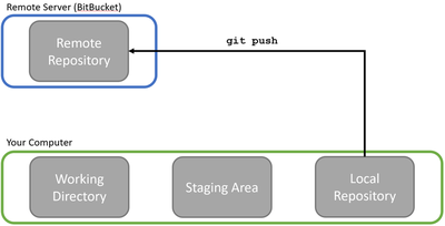 But committing only puts our changes in the local repository (shown by the little computer icon in GitKraken), not the remote repository where everyone else can see them (shown by the profile picture of the repository owner). Updating the remote repository with new commits from our local repository is called pushing.