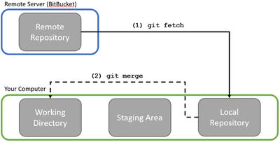 Fetching retrieves all the new updates (commits, files, etc.) from the remote repository and copies them to your local repository. These new updates exist separately from the rest of your work, allowing you to look into them independently from any changes you’ve made locally. If you want your team’s updates to be integrated with your local changes, you’ll need to merge them in.
