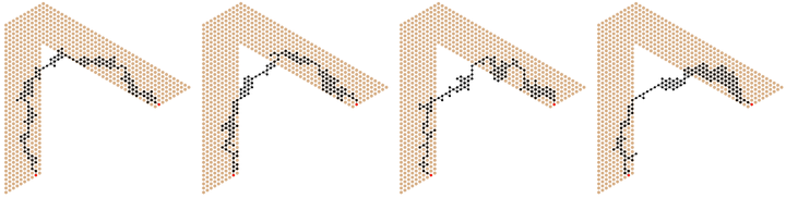 In a self-organizing particle system, an abstraction of programmable matter, simple computational elements called particles with limited memory and communication self-organize to solve system-wide problems of movement, coordination, and configuration. In this paper, we consider a stochastic, distributed, local, asynchronous algorithm for “shortcut bridging”, in which particles self-assemble bridges over gaps that simultaneously balance minimizing the length and cost of the bridge. Army ants of the genus Eciton have been observed exhibiting a similar behavior in their foraging trails, dynamically adjusting their bridges to satisfy an efficiency trade-off using local interactions. Using techniques from Markov chain analysis, we rigorously analyze our algorithm, show it achieves a near-optimal balance between the competing factors of path length and bridge cost, and prove that it exhibits a dependence on the angle of the gap being “shortcut” similar to that of the ant bridges. We also present simulation results that qualitatively compare our algorithm with the army ant bridging behavior. Our work gives a plausible explanation of how convergence to globally optimal configurations can be achieved via local interactions by simple organisms (e.g., ants) with some limited computational power and access to random bits. The proposed algorithm also demonstrates the robustness of the stochastic approach to algorithms for programmable matter, as it is a surprisingly simple extension of our previous stochastic algorithm for compression.