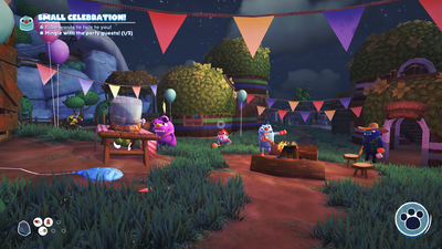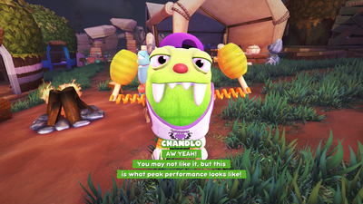 Gameplay is focused on entering a new area, finding its associated grumpuses who retreated there from the central town, convincing them to return to town via bugsnak-based fetch quests, and then coming back later to catch all the bugsnax you missed the first time. Hunting bugsnax involves a light amount of physics- and tool-based puzzle solving. Some need to be melted by tricking them to walk into a hot spring. Others need to be chased out of their holes using your snak-in-a-hamster-ball. Perhaps the most overpowered technique in the game is a carefully laid trip wire, ready to stun just about anything it touches. Figuring out these idiosyncrasies for the first time is good fun— repeating them for another ten hours to catch ‘em all is less rewarding.