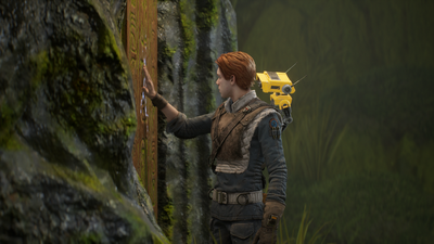 The five playable planets in this galaxy far, far away are largely linear, keeping you moving towards your next plot point. There’s not a side quest to be seen, and the only exploration Cal can do is to veer off the main path for a slightly less obvious path where he might find a secret or unlockable cosmetic. (As an aside, I love that Cal wears ponchos — as opposed to, I don’t know, Jedi robes? — but I can’t get over how over half of them are badly-fitting, hoodless, plastic raincoats.) 100%-ing Jedi: Fallen Order is a fine and relatively quick experience (except for the very Star Wars and very bad holomaps), revisiting planets when equipped with new Force abilities to get into previously inaccessible nooks and crannies. This feels less like a chore and more like virtual space-tourism, giving players a second chance to appreciate the beautifully crafted set design and try out the very nicely implemented photo mode.